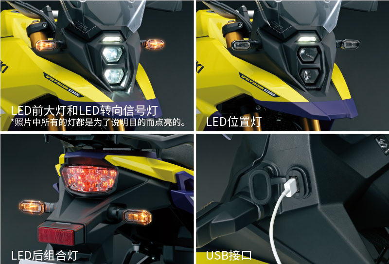 匹配时尚的车身颜色,赋予V-STROM独特的旅行车外观。